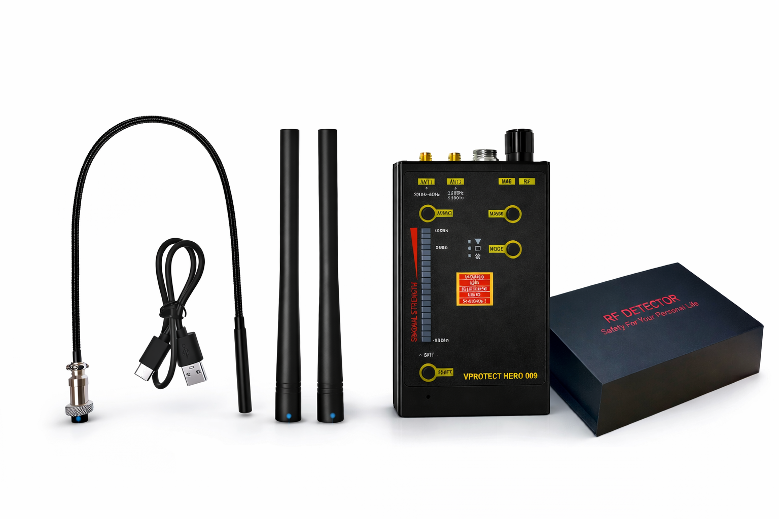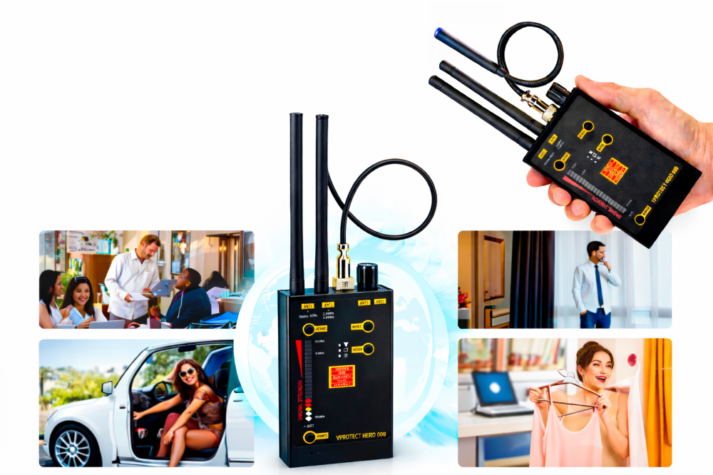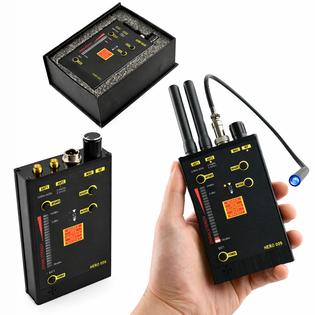 Multifunkčný RF detektor skrytých kamier a GSM odposluchov VPro Hero 009